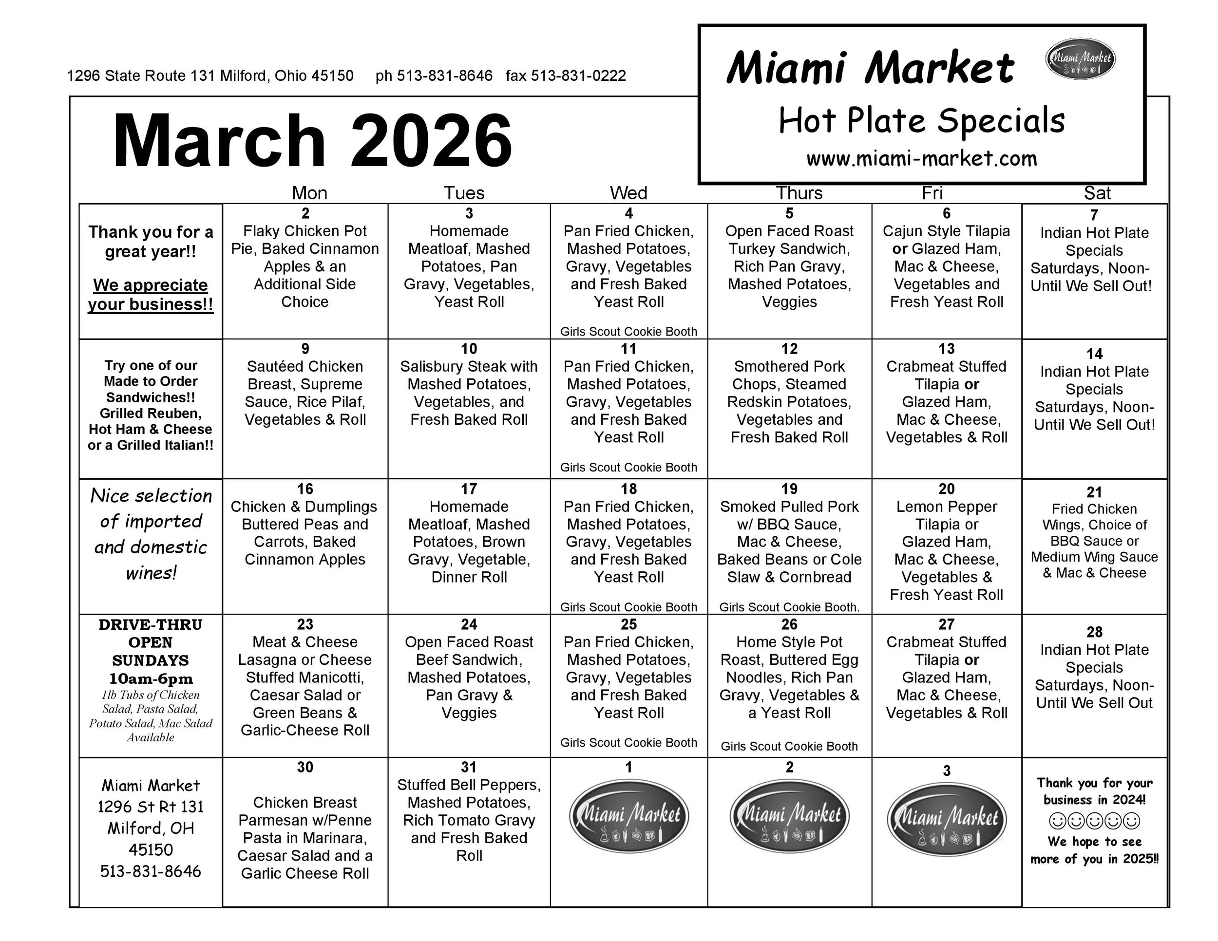 Monthly Hot Plate Special Menu